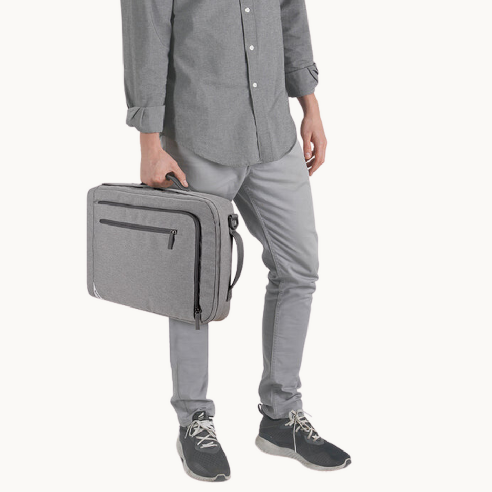 - Briefcase transforms into backpack